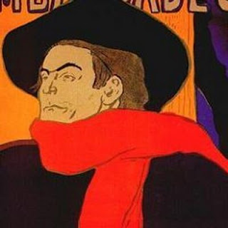 de saber entrar assim no café, vestido de preto, o grande cachecol vermelho